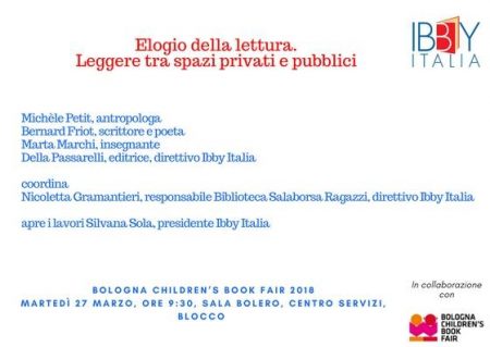 Bologna si riempie di libri, ma anche di ragionamenti e riflesssioni sulla letteratura per l’infanzia. Ibby Italia ha organizzato un incontro speciale, nella mattina del 27 marzo. Elogio della lettura, con Michele Petit e Bernard Friot è una grande occasione.
