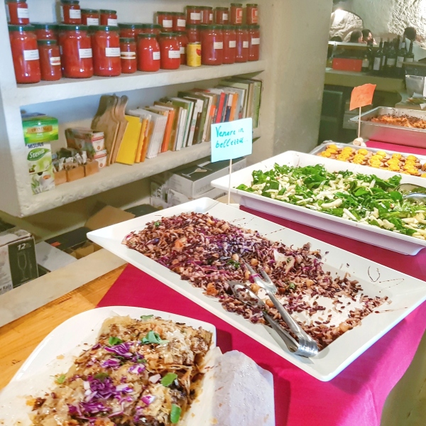 Il Ketumbar nasce proprio in uno di questi grottini, e nelle sale ampie vetrate permettono di vedere direttamente le pareti di cocci alle spalle del locale.