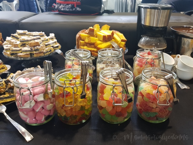 Bellissimi i dolci, crostate e torte alla crema, al cioccolato, pancake, con diversi accompagnamenti e i barattoli delle caramelle da far impazzire i bambini… (anche se io ho visto anche i grandi che li mangiavano! ^_*)