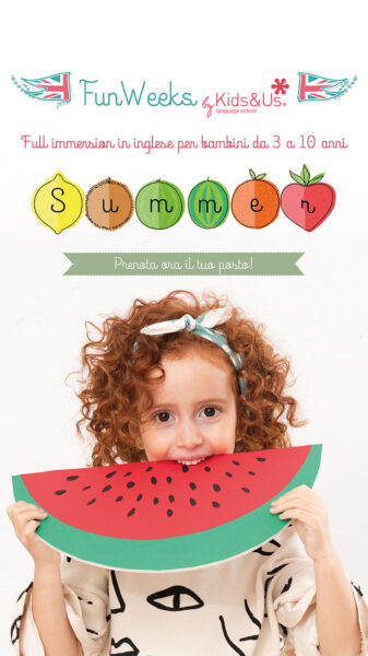 Le Fun Weeks di Kids&Us sono dei campi estivi urbani per bambini dai 3 ai 10 anni, che si sviluppano tutte le mattine ogni settimana – dalle 9 alle 13 – attorno ad un tema specifico. In questo modo i bambini migliorano il loro inglese mentre vivono una esperienza legata alle diverse tematiche, che cambiano ogni settimana, in un ambiente pieno di stimoli e giochi tra amichetti.