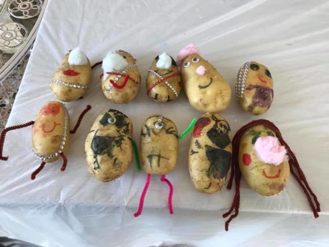 L’ultimo appuntamento della giornata prima del gioco libero in attesa dei genitori, era con i laboratori creativi, ogni giorno uno diverso: il primo giorno un enorme telo bianco è diventato la tela su cui ognuno di loro ha liberato la propria creatività o un altro giorno delle semplici patate sono diventate la caricatura dei teacher.