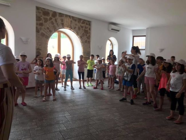 Dopo i giochi d’acqua si tornava di nuovo all’interno della villa per il momento dei canti e balli, sempre a tema, in preparazione dell’esibizione del Venerdì. Non vi dico la mia emozione nel sentire i miei figli cantare in inglese scandendo perfettamente le parole. Un risultato incredibile!