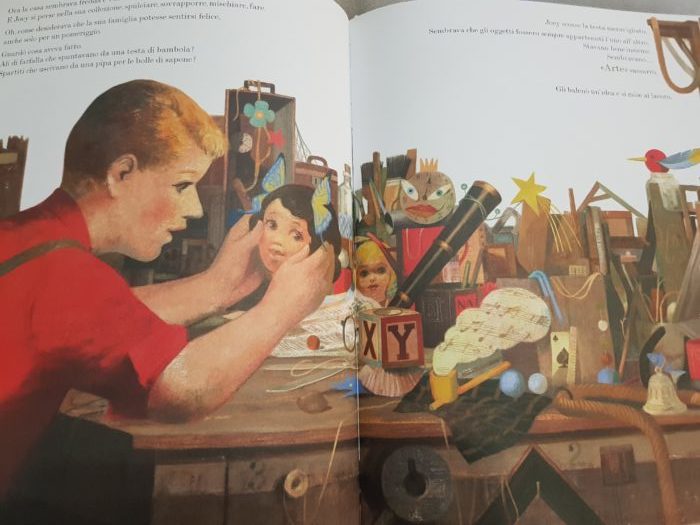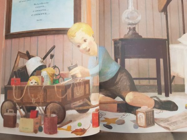 Joey è un bambino dalla sconfinata capacità di immaginare. I suoi occhi vedono cose che gli altri non sanno cogliere, e ancor meno raccogliere. Lui invece raccoglie, e tanto, andando in giro con il suo carretto. Nella sua testa, le cose assumono un valore che nessun altro è in grado di capire: una cassaforte è magica, un malconcio telescopio è celeste, una piuma di pappagallo è esotica… Giorno dopo giorno, un oggetto dopo l’altro, quel bambino diventa il più grande artista del Surrealismo americano: Joseph Cornell. La collezione di Joey edito da Orecchio Acerbo è la storia della sua infanzia.