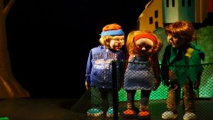 Sette Burattini e due attrici danno vita alla storia di Cenerentola.