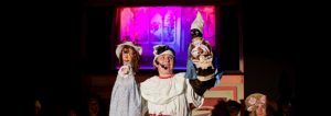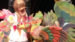 Sette Burattini e due attrici danno vita alla storia di Cenerentola.