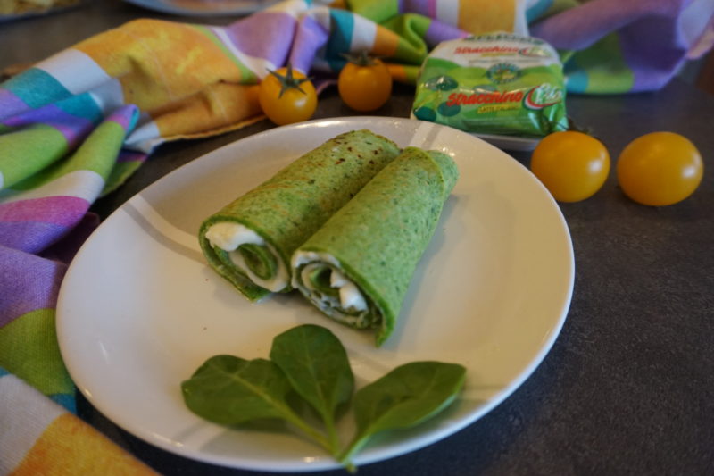 Come vi dicevo il contest prevede la preparazione di una ricetta da proporre ai più piccoli usando come ingrediente uno dei formaggi freschi del Caseificio Tomasoni. Io ho pensato a delle invitanti crepes verdi, preparate con spinacino fresco e ripiene di zucca e stracchino BIO Tomasoni. Vi racconto come le ho preparate…