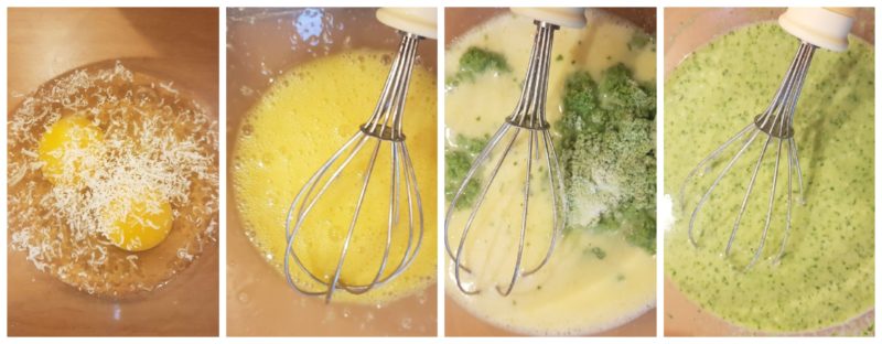 A questo punto sbattete le uova, aggiungete il parmigiano, la metà del latte e pian piano la farina (verde). Mescolate in modo da rendere il composto omogeneo e senza grumi, aggiungete il resto del latte e preparatevi alla cottura.
