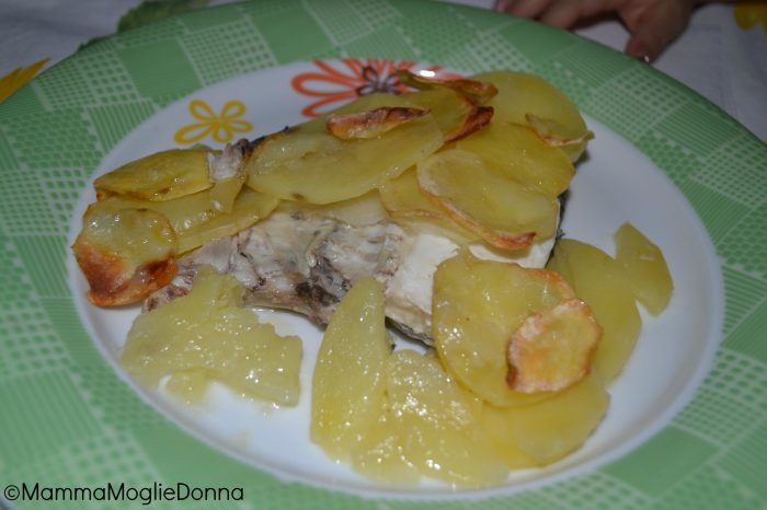 io adoro questa ricetta che anche da mia mamma mangiavo volentieri. a casa mia, invece, non piace molto….. impareranno ad apprezzare con il tempo quel gustoso contrasto tra delicatezza del pesce e croccantezza delle patate