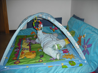 Così stamattina ho deciso di ricreare per lui un angolino analogo a quello che aveva in casa il fratellone e da cui il fratellone è partito all’età di 7 mesi per iniziare a conoscere da solo la nostra casa e poi il mondo.
