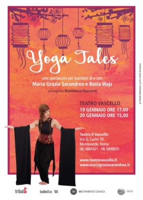 Yoga Tales è uno spettacolo interattivo per bambini, ideato e interpretato da Maria Grazia Sarandrea e Basia Wajs, che prende spunto dalla millenaria cultura indiana dello yoga. Scenografie simboliche e colorate fanno da sfondo allo spettacolo. Fiabe magiche rievocano ai piccoli spettatori/protagonisti posizioni ispirate agli animali e alla natura.