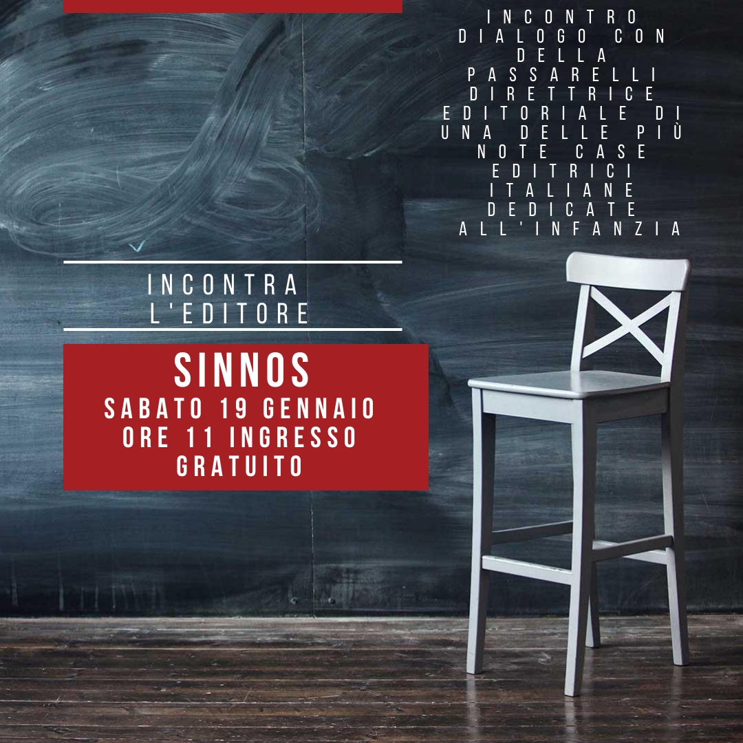 Secondo appuntamento con i direttori editoriali delle più interessanti case editrici specializzate per l’infanzia. Il 19 gennaio, alle ore 11.00 incontriamo Della Passarelli, per Sinnos, per parlare di progetto editoriale, percorsi bibliografici, novità e libri storici. L’incontro è rivolto alle insegnanti, ma anche ai genitori e persone che desiderano conoscere uno dei più belli e noti progetti editoriali italiani rivolti ai bambini. Durante verrà distribuito il catalogo aggiornato della casa editrcie. Prenotazione obbligatoria info@centostorie.it, ingresso gratuito