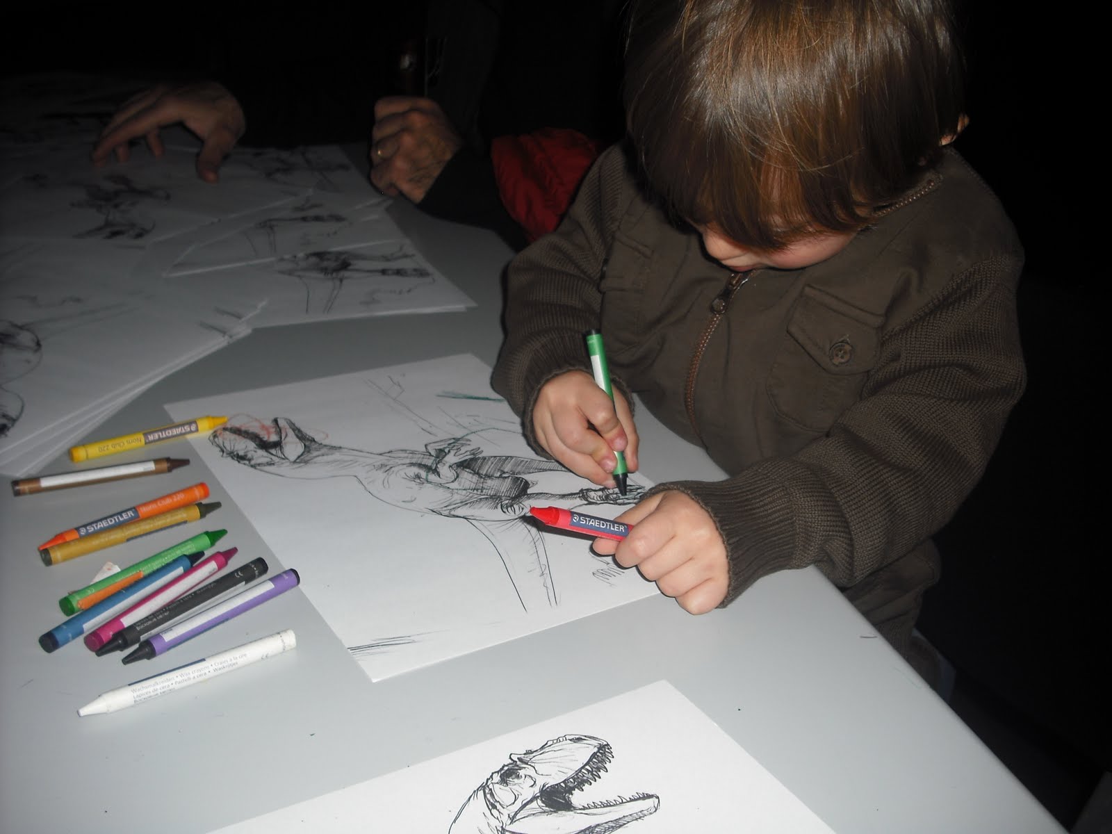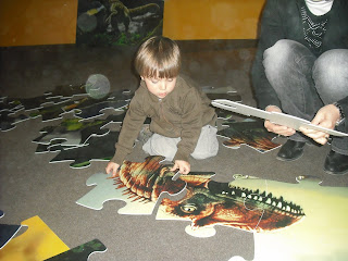 Neanche a dirlo, Filippo si è intrufolato ascoltando o fingendo di ascoltare la guida e partecipando anche alle attività che la mostra metteva a disposizione dei bimbi, come la ricerca di fossili in una piscina di sabbia o il mega puzzle.