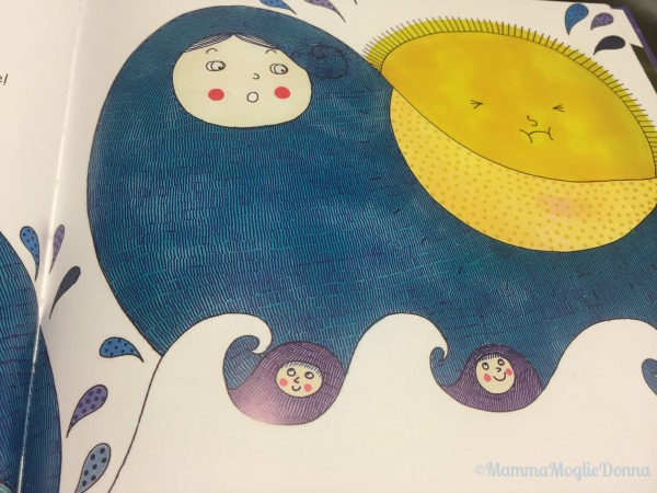 Il Mare suggerisce al SOLE di bere, dice che una volta con una balena ha funzionato… ma, appena il SOLE si immerge nel mare per bere, un filo di fumo si alza nel cielo, per fortuna poi qualcuno urla “Tiratelo fuori! Così si spegne per sempre!”