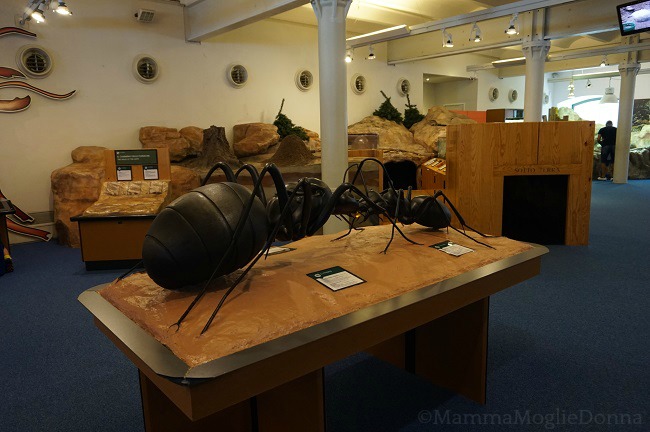 Spazio viventi con formicaio e lo stagno delle testuggini. Qui si possono osservare formiche all’opera da sopra e sotto il formicaio (con un tunnel vi si può passare sotto).