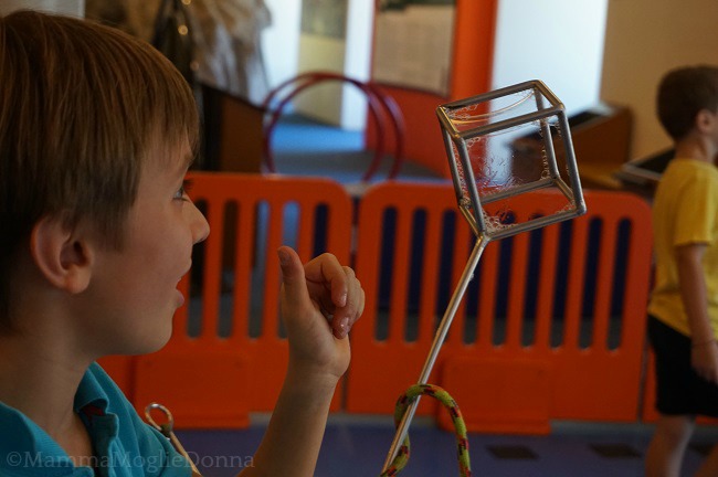 Spazio dedicato alla fisica: bolle di sapone, luci e specchi, illusioni ottiche.