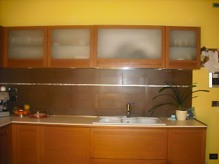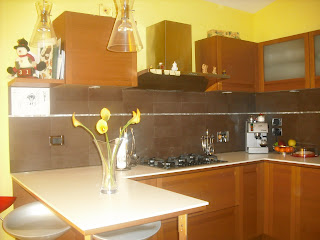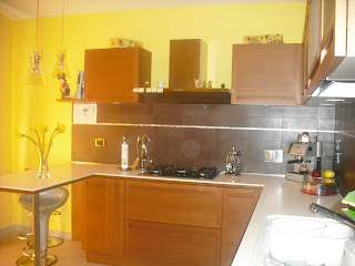 Ricordo la scelta del giallo(il mio colore preferito!) per le pareti e il marrone per il rivestimento… il mio fiore preferito è il GIRASOLE e questa cucina è il mio girasole in casa!