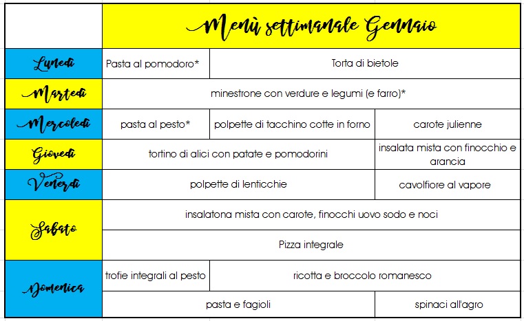 Menù settimanale Gennaio