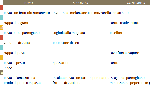 Se volete scrivere da sole il vostro menù settimanale, qui trovate i miei consigli su come organizzare un menù settimanale per i bambini e per tutta la famiglia.