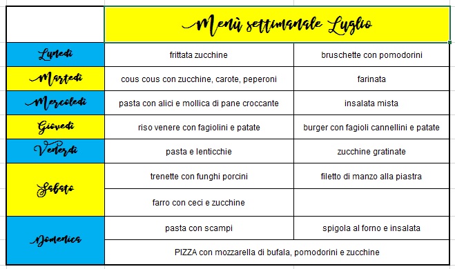 Menù settimanale Luglio