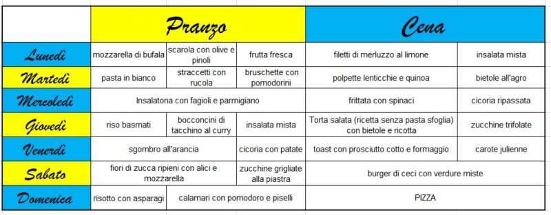 Se volete scrivere da sole il vostro menù settimanale, qui trovate i miei consigli su come organizzare un menù settimanale per i bambini e per tutta la famiglia.