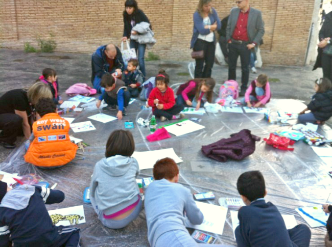 Dopo aver osservato a lungo e con tutta calma la mostra degli impressionisti, ci siamo seduti sul cortile esterno e i bambini hanno avuto modo di produrre un loro disegno, più o meno ispirato alla mostra.