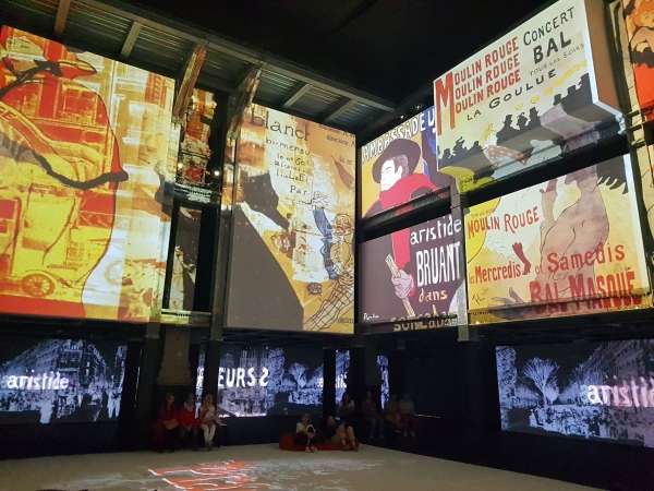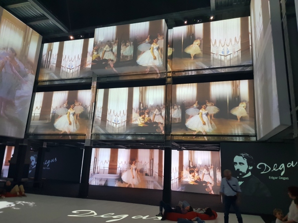 Dopo questa prima introduzione più teorica, il visitatore viene introdotto nelle due enormi sale dove la proiezione immersiva esplode di musica, con una stupenda colonna sonora di Debussy, Čajkovskij, Ravel, Offenbach, di colori con le magifiche proiezioni, ma anche di profumi, che cercano di immergere ancora di più il visitatore nell’atmosfera parigina del tempo.