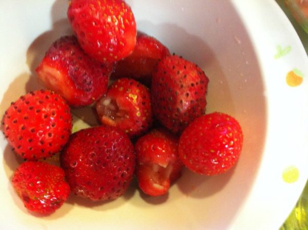 Le fragole, tante, rosse e saporite che non ero abituata perché Filippo le mangia appena son rosate..