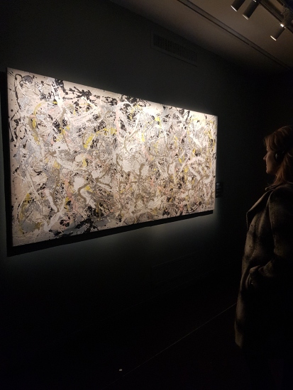 Le opere di Pollock in mostra sono pochissime, solo 6, di cui 2 disegni più foto e brevi filmati del regista tedesco Hans Namuth, dai quali restiamo affascinati nel vedere come Pollock lavorasse alla pittura, stravolgendola rispetto ai canoni ordinari.