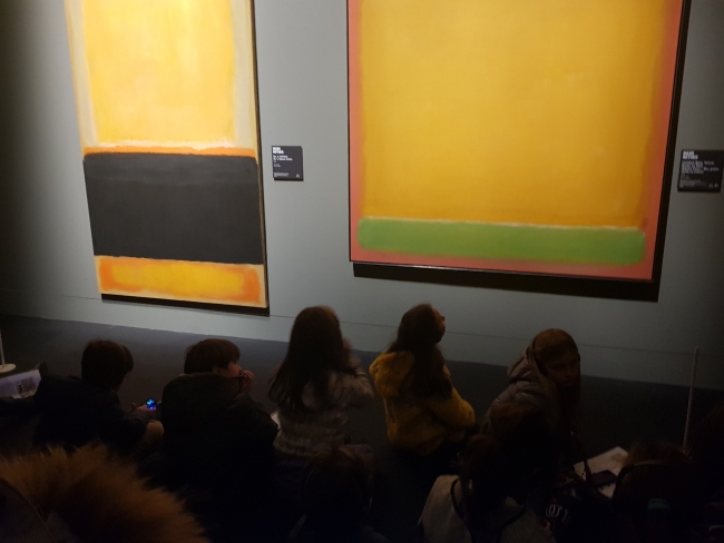 Monica ha raccontato loro del rapporto di Pollock con sua moglie Lee Krasner e del contributo di questa (più o meno celato dalla storia) nello sviluppo dell’arte di Pollock, ha raccontato di come Pollock approcciasse le sue opere, ella sua tecnica dell’Action Painting ovvero della pittura d’azione uno stile pittorico con cui il colore viene applicato sulla tela in modo gestuale ed energico.