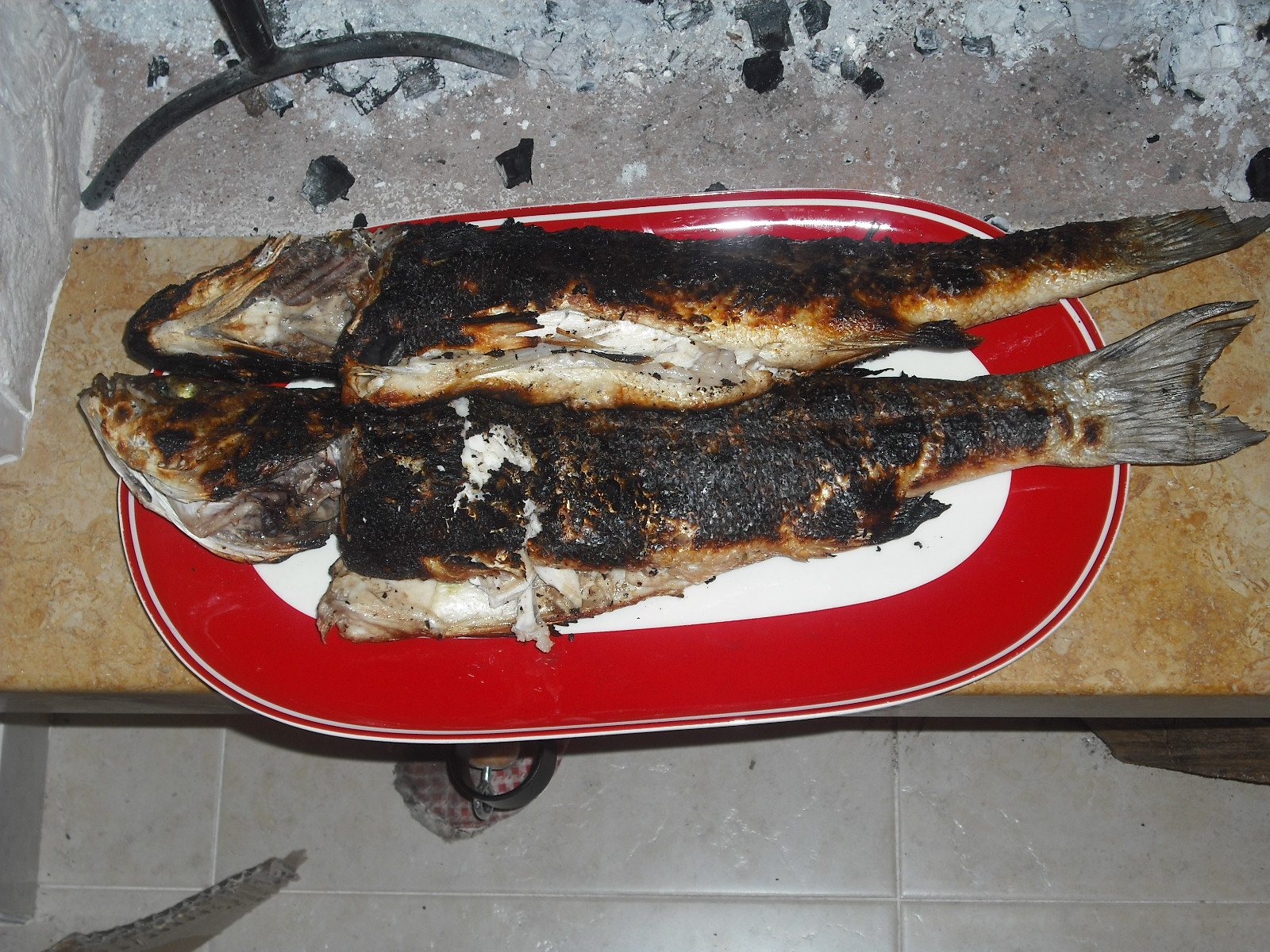 Spigole di mare di 1,1 kg ciascuna alla brace