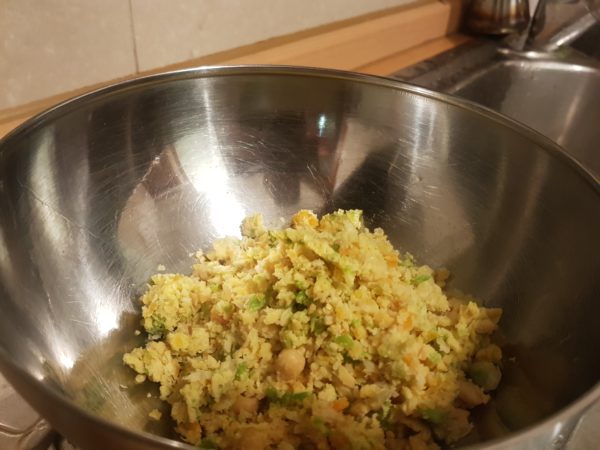 Una volta cotti, frulliamo grossolanamente il tutto e mescoliamo aggiungendo cumino tritato e un po’ di aglio.