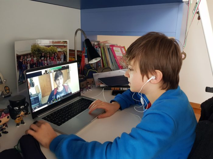 Filippo invece sta facendo delle vere e proprie video lezioni, didattica a distanza con il suo insegnante e i suoi compagni.